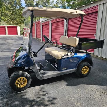 4 passenger electric golf cart with utility bed new seats, NEW BATTERIES, dual USB, windshield and charger included.