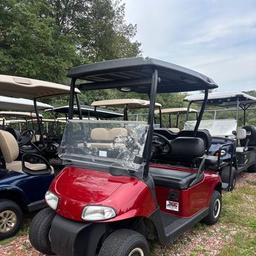 4 passenger electric golf cart with LED lights, rear seat, new seats, dual USB, NEW BATTERIES, windshield and charger included.